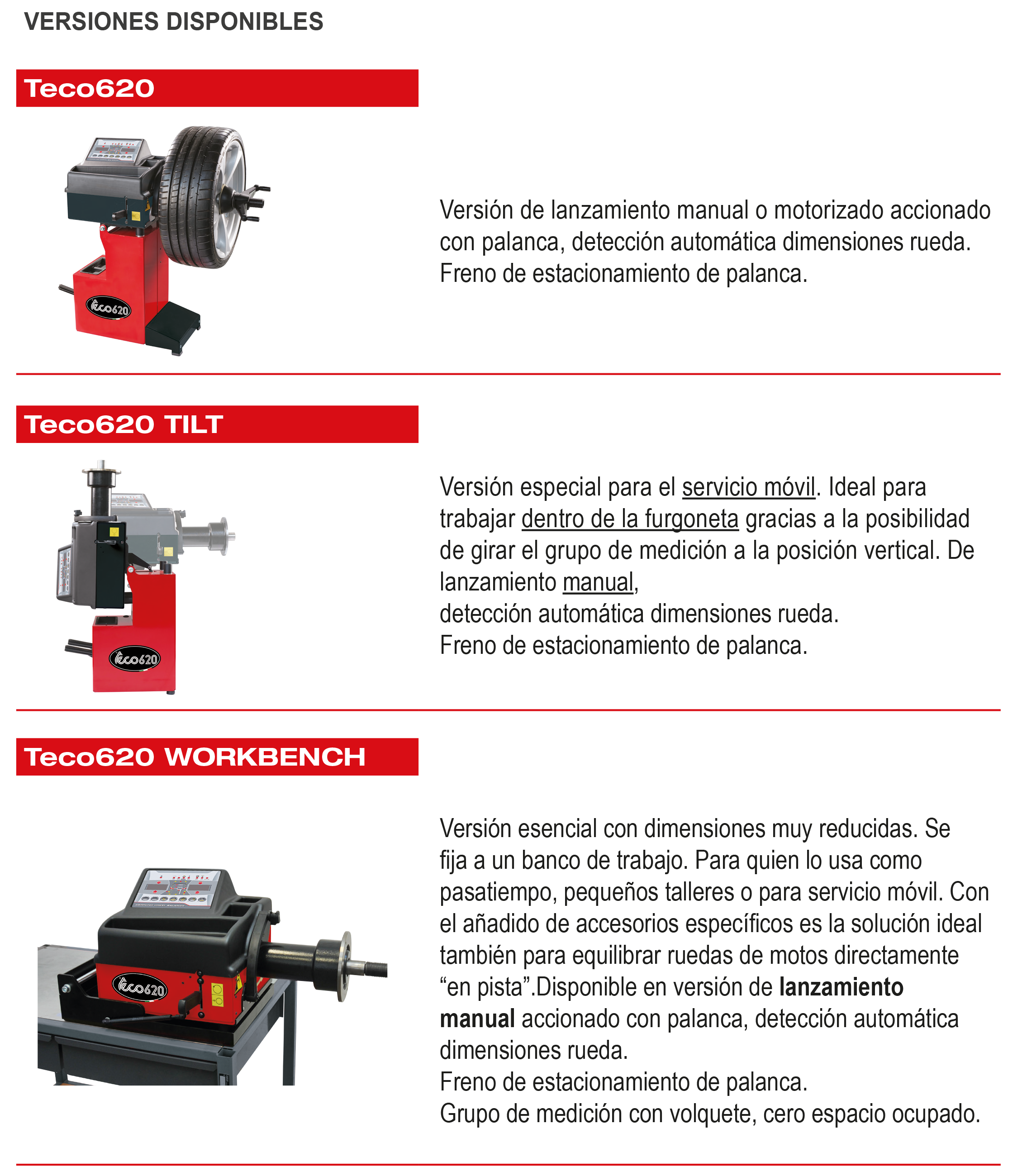 Teco 620Equilibradora de ruedas compacta con pantalla digital para el servicio móvil o para los talleres con espacio limitado! Compacta y ligera. Es la más pequeña de la gama pero cuenta con los programas más avanzados presentes en los modelos de franja superior.
